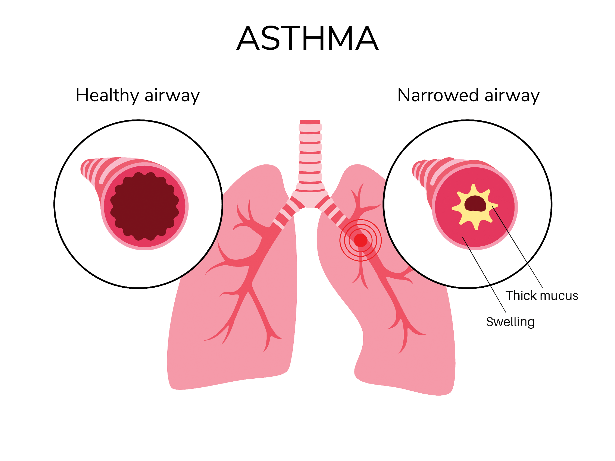 When you come into contact with something that irritates your lungs, known as a trigger, your airways become narrow, the muscles around them tighten and there is an increase in the production of sticky mucus (phlegm).