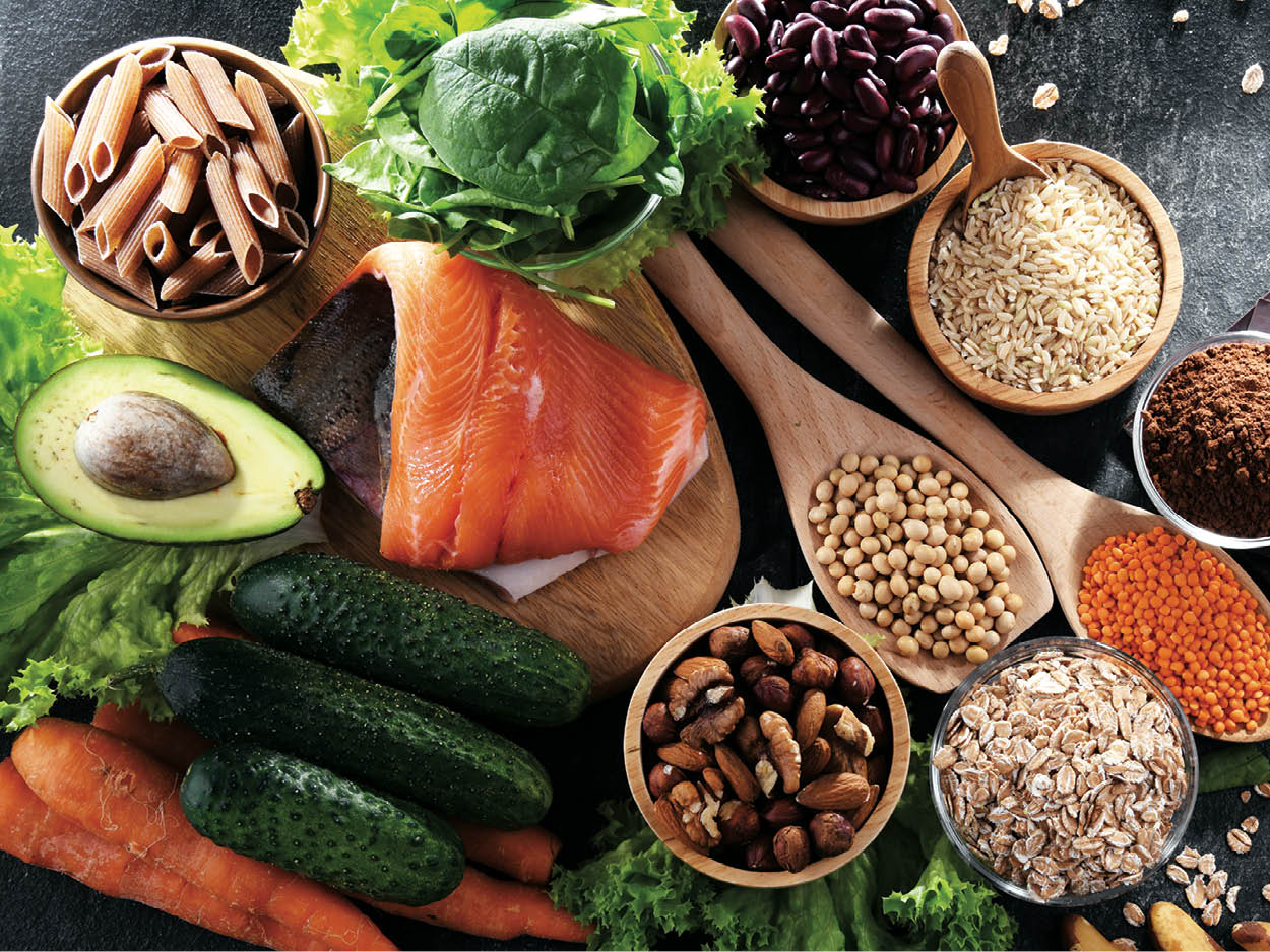 A healthy balanced diet is important for good health. It should include high fibre foods like wholegrains, oats, beans, lentils, nuts, fruits, and vegetables, which are good for keeping your heart healthy and controlling blood pressure.